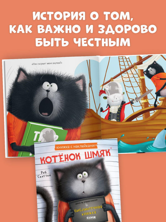 Книжки-картинки с наклейками. Котенок Шмяк и библиотечная книжка. Книжка с наклейками