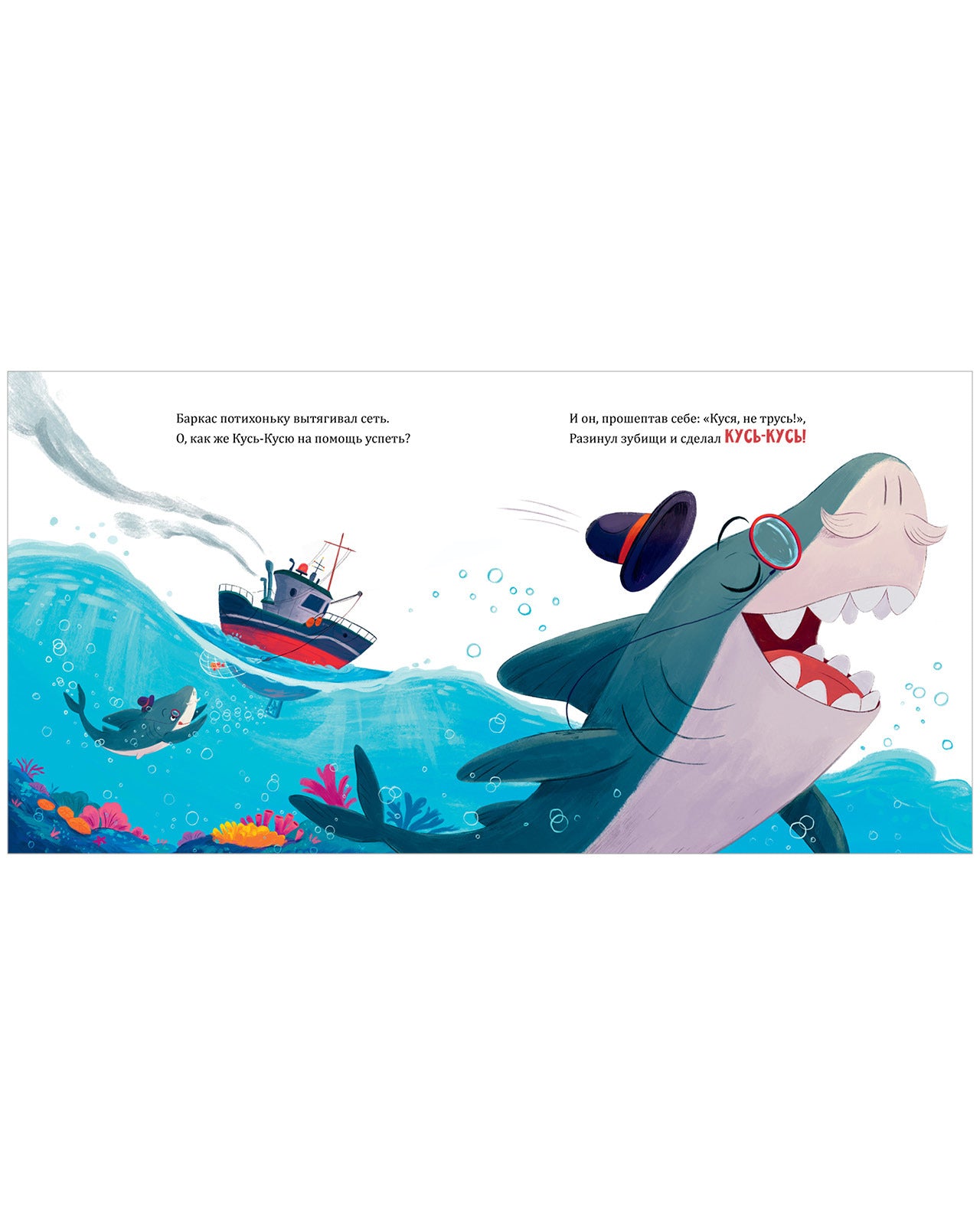 «Восхитительный мистер Кусь-Кусь» выходит в мягкой обложке — такую книжку можно взять с собой и на прогулку, и в гости, и в отпуск. А еще ее удобно держать даже маленьким детским ручкам и читать о приключениях самой обаятельной акулы, куда бы вы ни отправились!
