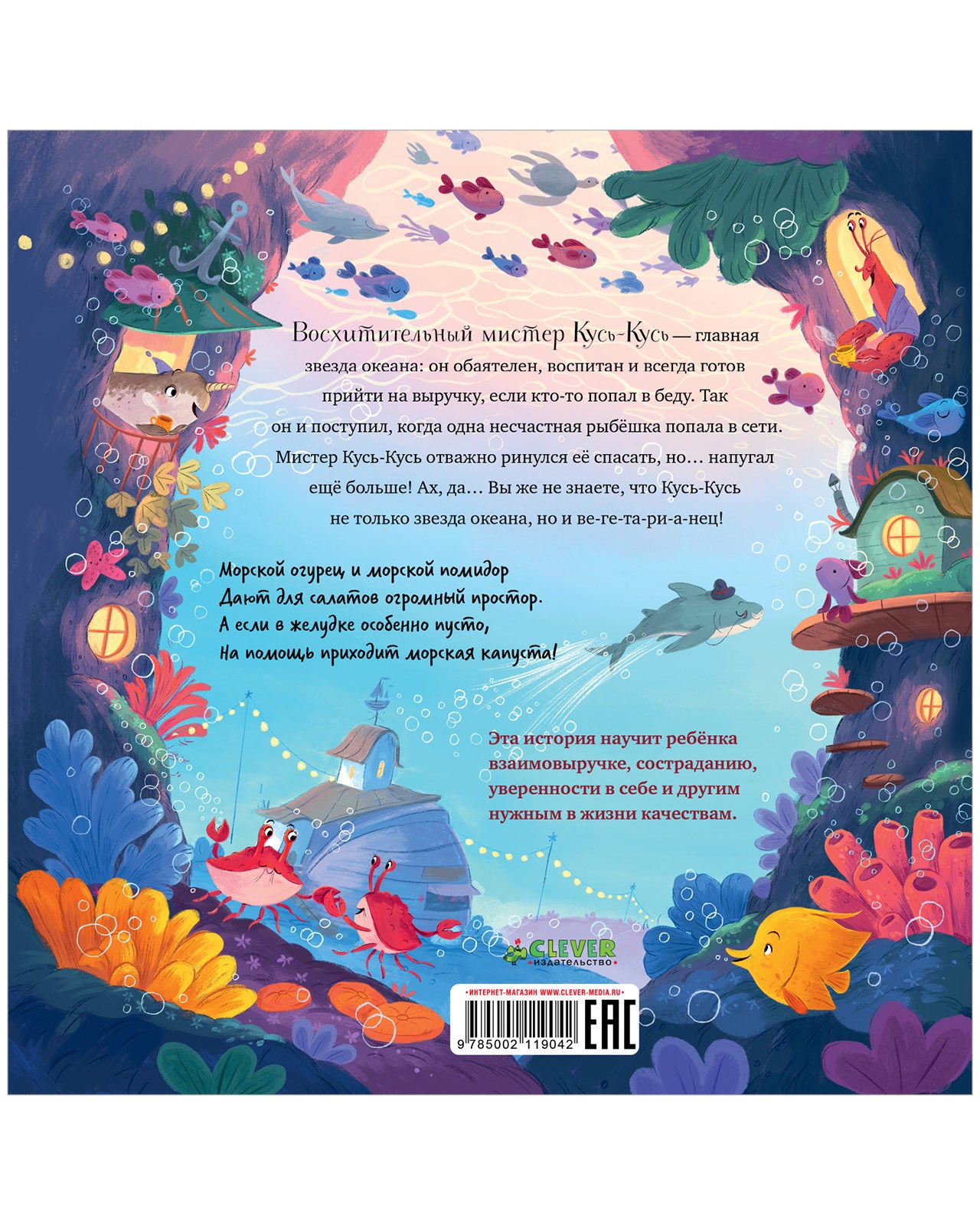 Восхитительный мистер Кусь-Кусь обаятелен, воспитан и всегда готов прийти на выручку. В общем, настоящий джентльмен. Конечно, он не смог остаться в стороне, когда маленькая несчастная рыбешка попала в сети. Кусь-Кусь отважно бросился на помощь… но напугал рыбку еще больше! Ах, да… Она же не знала, что Кусь-Кусь не только звезда океана, но и ве-ге-та-ри-а-нец!