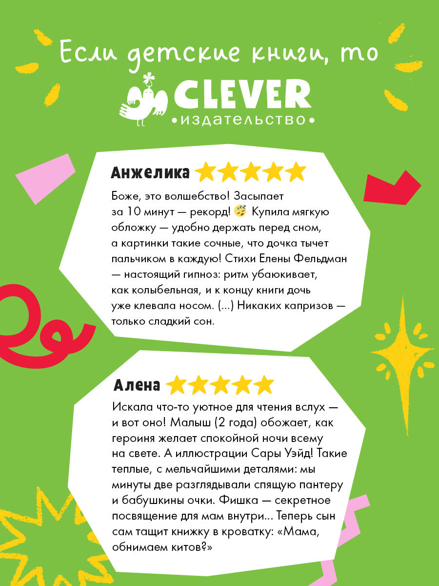 Вот что говорит автор, Елена Фельдман: «Я решила написать книгу, которая не просто мягко убаюкает больших и маленьких, а гарантированно усыпит читателя максимум к пятому развороту. Читайте, зевайте, КРЕПКО СПИТЕ, и пусть вас навещают только самые светлые и добрые сны».
