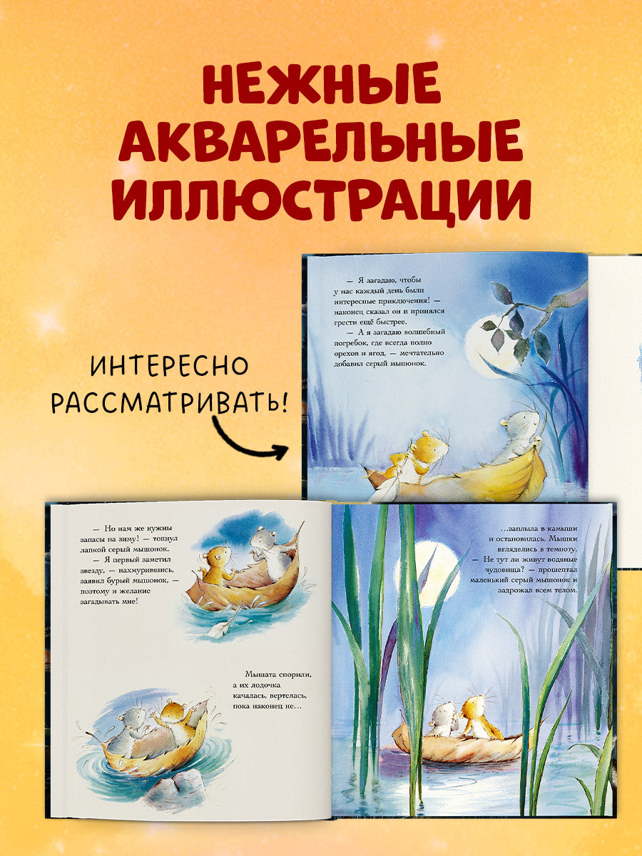 Два мышонка — лучшие друзья, других таких нет на свете! Однажды они увидели Счастливую звезду, которая исполняет желания. Она пронеслась по ночному небу и упала в озеро. Скорее, на поиски! Но вот беда: звездочка одна, а желаний у друзей много… Какое же из них самое важное?