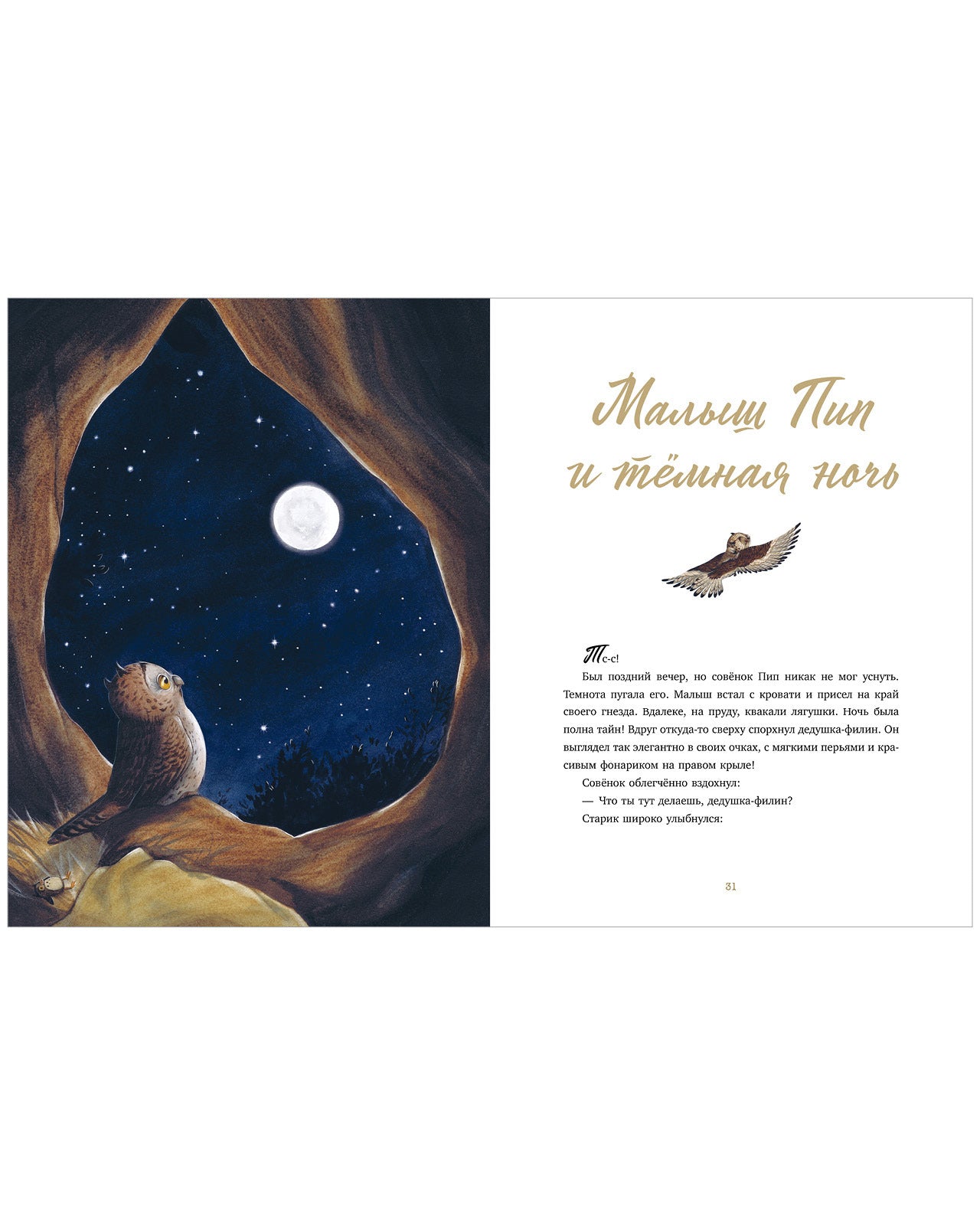 В этой книге вас ждут девять чудесных сказок для чтения перед сном. Вы узнаете, какое сокровище нашёл зайчонок в рождественскую ночь, что делал лис в школе для цыплят, кому помог добрый щенок Полошон, и совершите полёт с дедушкой-филином и маленьким совёнком Пипом.