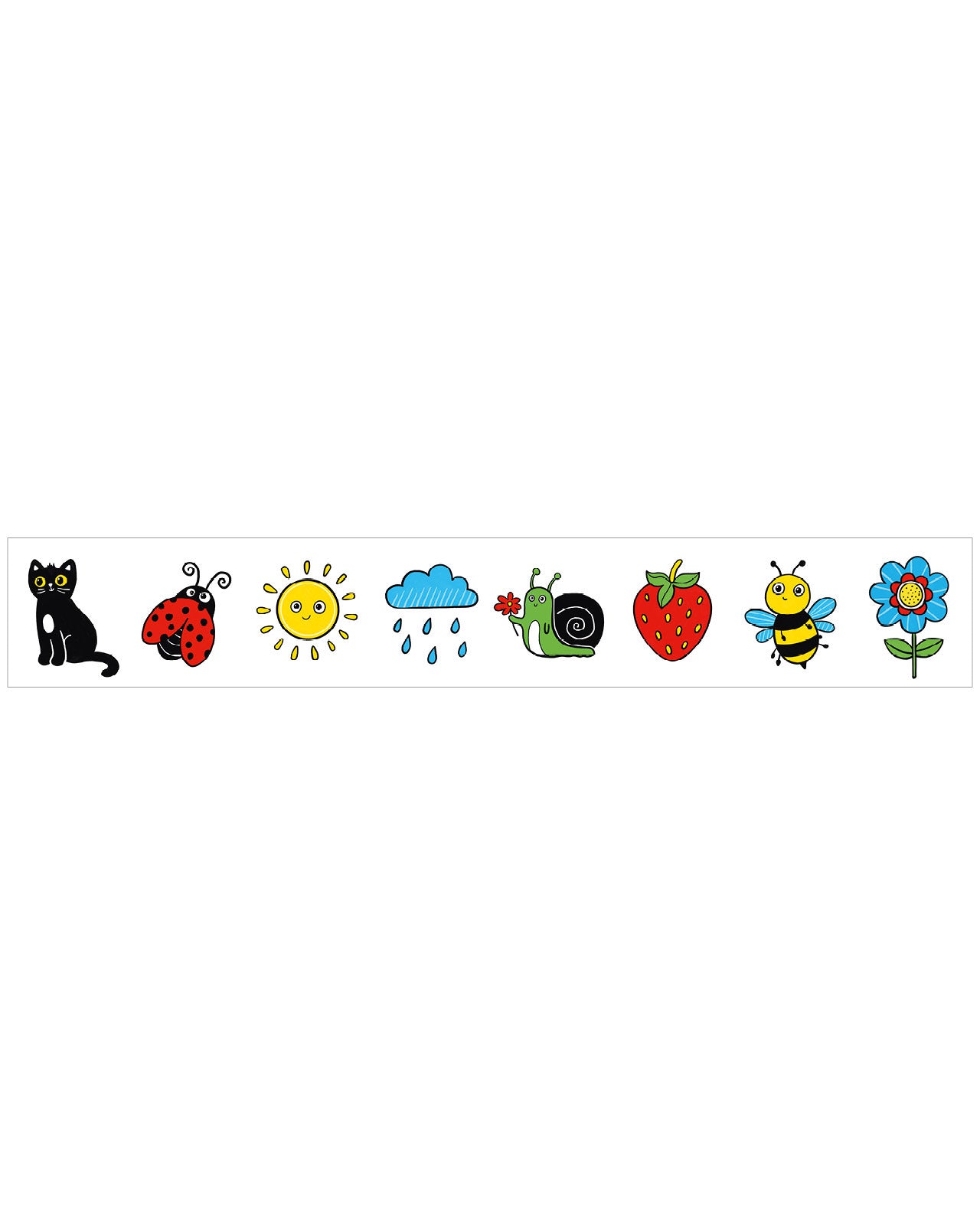 Изображения составлены с учётом особенностей зрительного восприятия ребенком раннего возраста: на лицевой стороне книжки-гармошки размещены объекты 4 основных цветов (красного, желтого, синего и зеленого), на обороте - черно-белые узоры и паттерны.