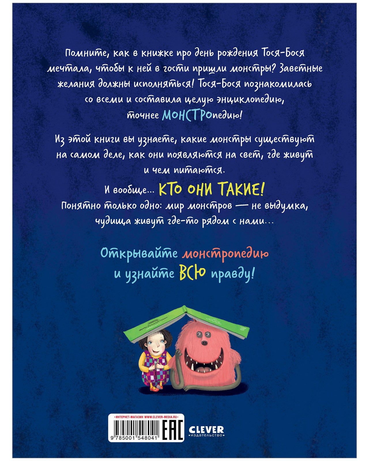 Помните, как в книжке про день рождения Тося-Бося мечтала, чтобы к ней в гости пришли монстры? Заветные желания должны исполняться! Тося-Бося познакомилась со всеми и составила целую энциклопедию, точнее МОНСТРОпедию! Из этой книги вы узнаете, какие монстры существуют на самом деле, как они появляются на свет, где живут и чем питаются. И вообще… Кто они такие! Понятно только одно: мир монстров - не выдумка, чудища живут где-то рядом с нами...Открывайте монстропедию и узнайте всю правду!