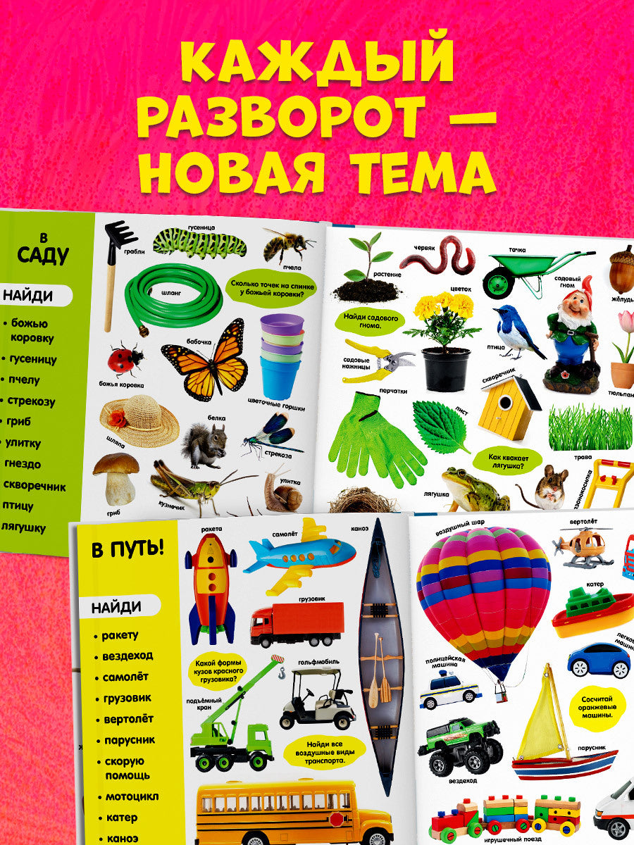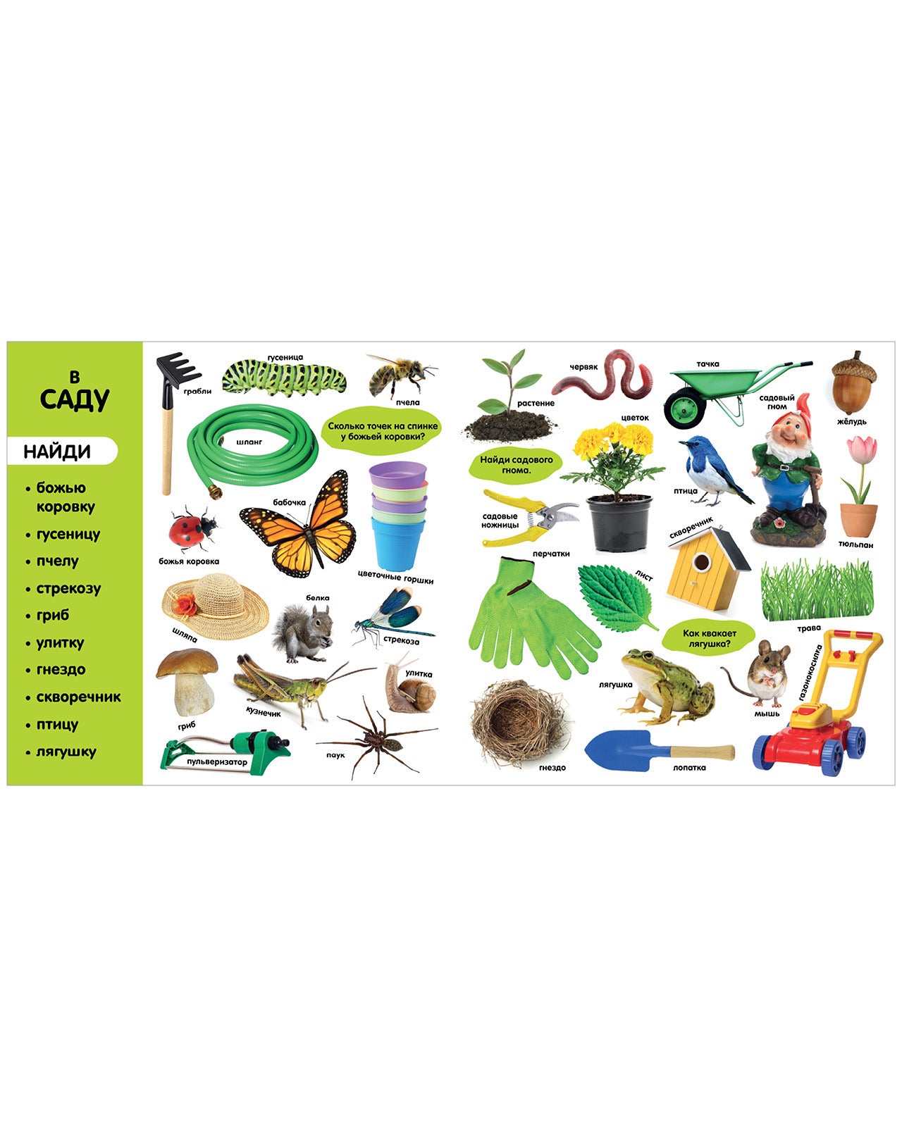 Фотокнига "Первые слова" увлечет ребенка надолго и поможет ему в игровой форме запомнить много новых слов. Благодаря большому формату и плотному картону она идеально подходит для занятий даже с полугодовалым малышом. Почему заниматься с этой книжкой так интересно? На каждом развороте малыш будет знакомиться с новыми словами и предметами, играть в "найди и покажи", отыскивая и считая заданные предметы, отвечать на вопросы. Кроме того, занятия с книгой помогут расширить кругозор и увеличить словарный запас, ведь названия всех предметов подписаны, а это 275 новых слов! Изучая книгу, вы побываете в парке, на пляже, в зоопарке, на ферме, на кухне, в дороге, в магазине, в саду, на зимней прогулке и в комнате для занятий.